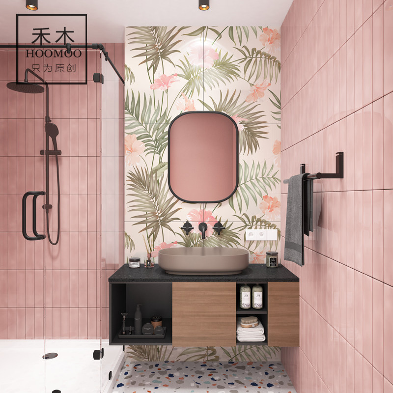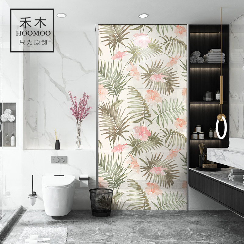 American country pastoral flower powder room tile background wall toilet bathroom decoration painting simple European personality art brick