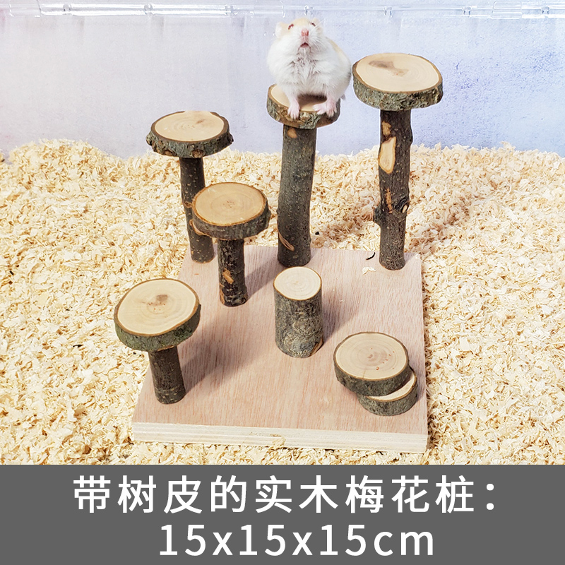 Hamster gnawing playground Natural log toys Play supplies Cage decoration Two-story ladder drilling hole Fitness