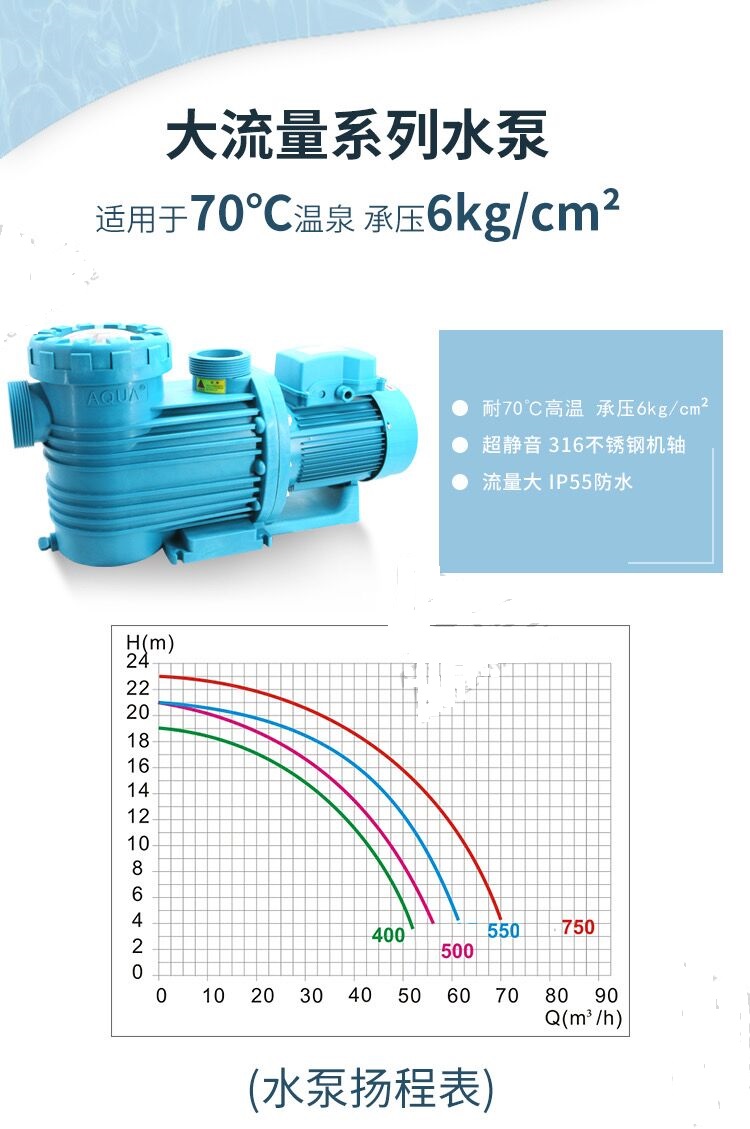 Aike water pump AB400 500 550 750 stainless steel machine shaft circulation motor high temperature resistant pool hot spring pump