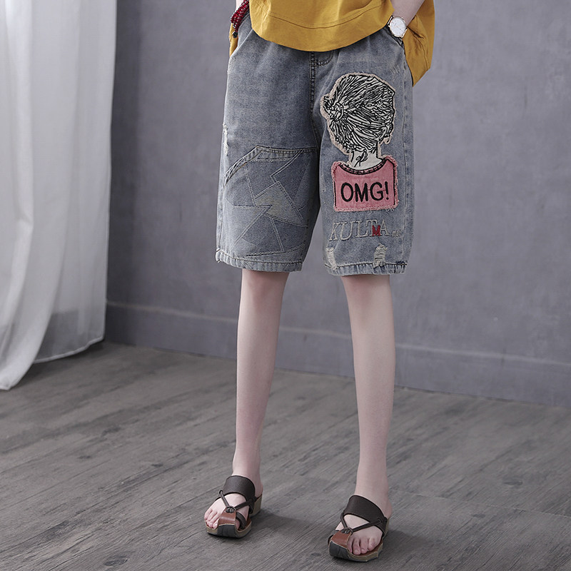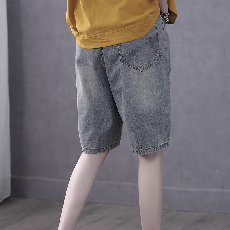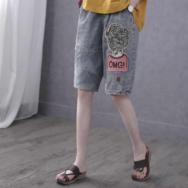 Han Soyi Retro Art Summer 50% Pants Women Pants Port Taste Straight Drum Cloth Heels Embroidered Jeans Woman High Waist 50% Pants