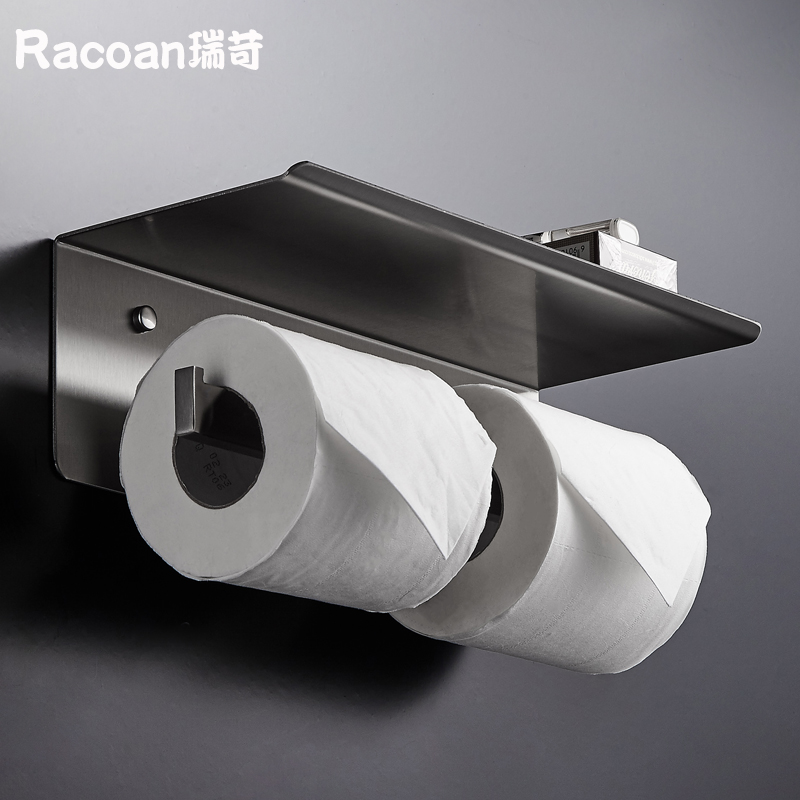304 Stainless Steel Hotel Wall Pendants Makeup room Toilet Twin-drum sanitary paper towel rack phone shelve free of punch