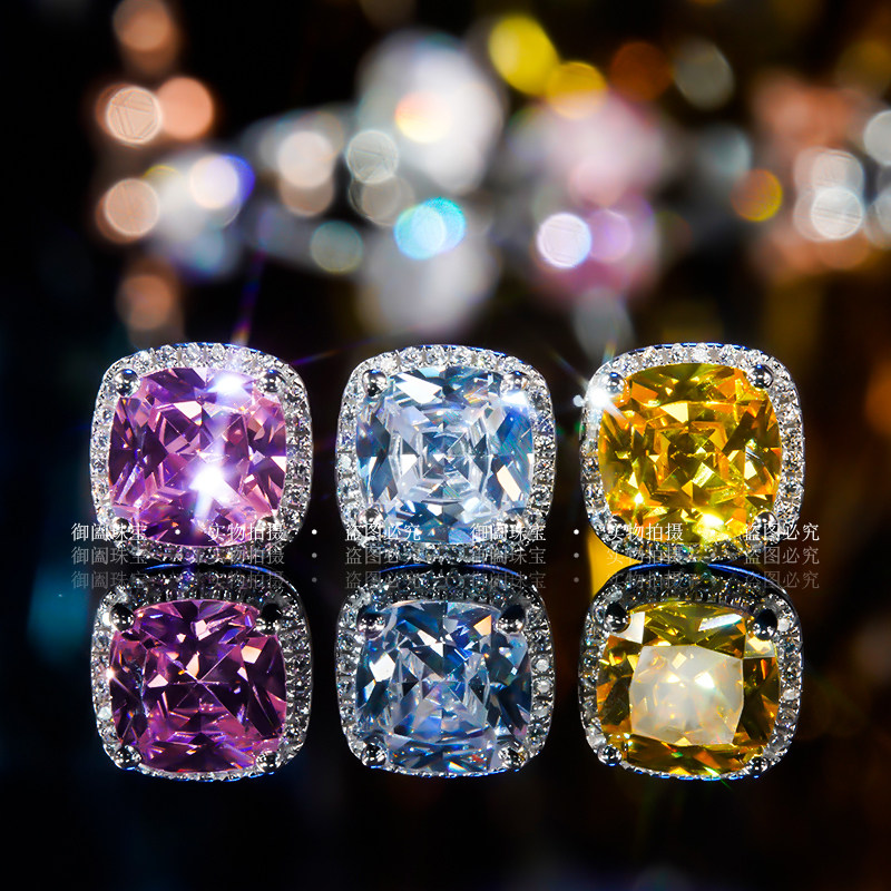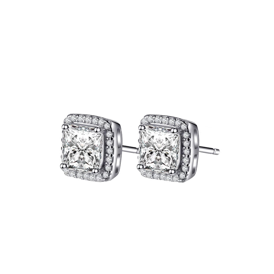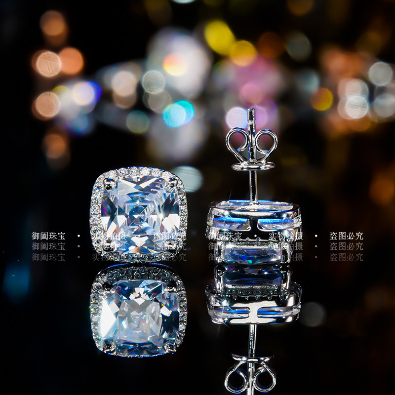 Square drill white diamond mosanstone ear needle female pure silver plated 18k gold square surround drill earrings female group inlaid with earrings