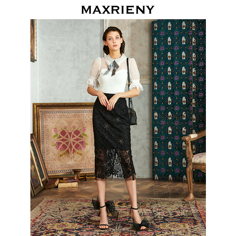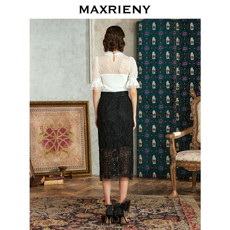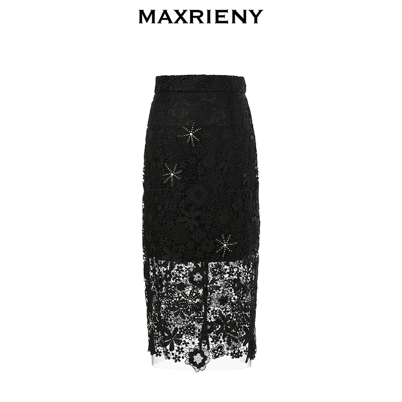 MAXRIENY new summer fashionable lace skirt women's black mid-length skirt A-line skirt small black skirt