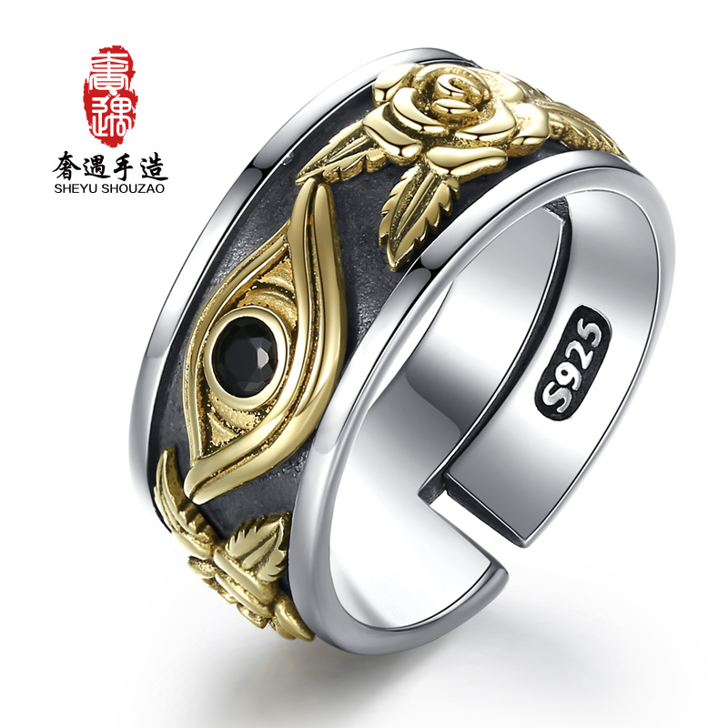 Luxury men's ring Sterling silver hip hop Horus Eye of God single opening Vintage personality transporter ring tide