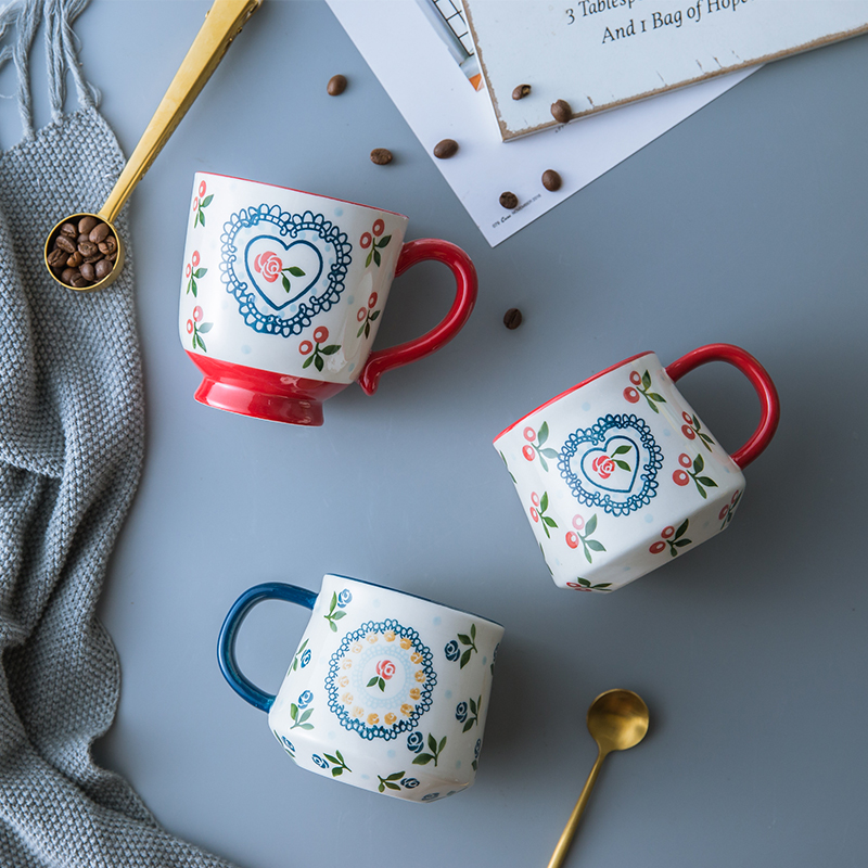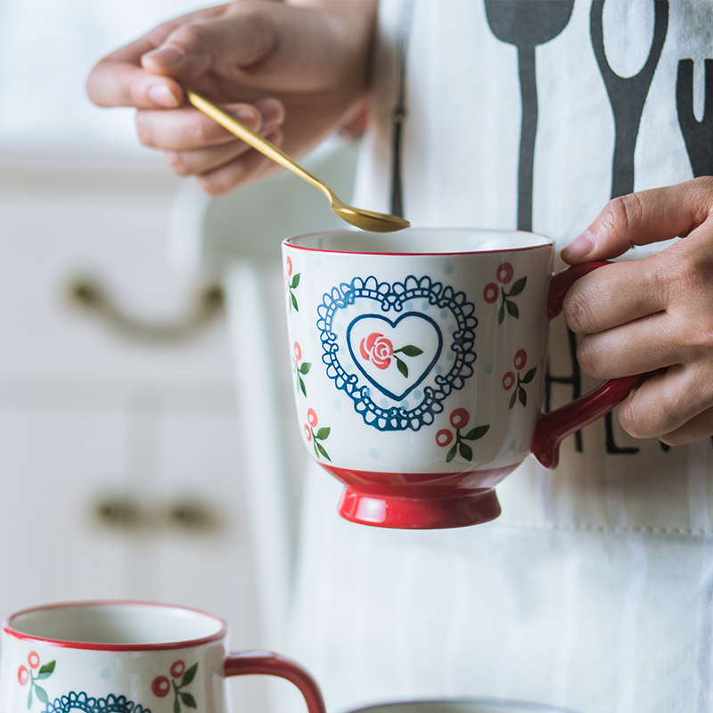 Nordic Ins Ceramic Cup Mark Cup Cute Teenage Cup Cherry Lovers Milk Office Coffee Breakfast Cup