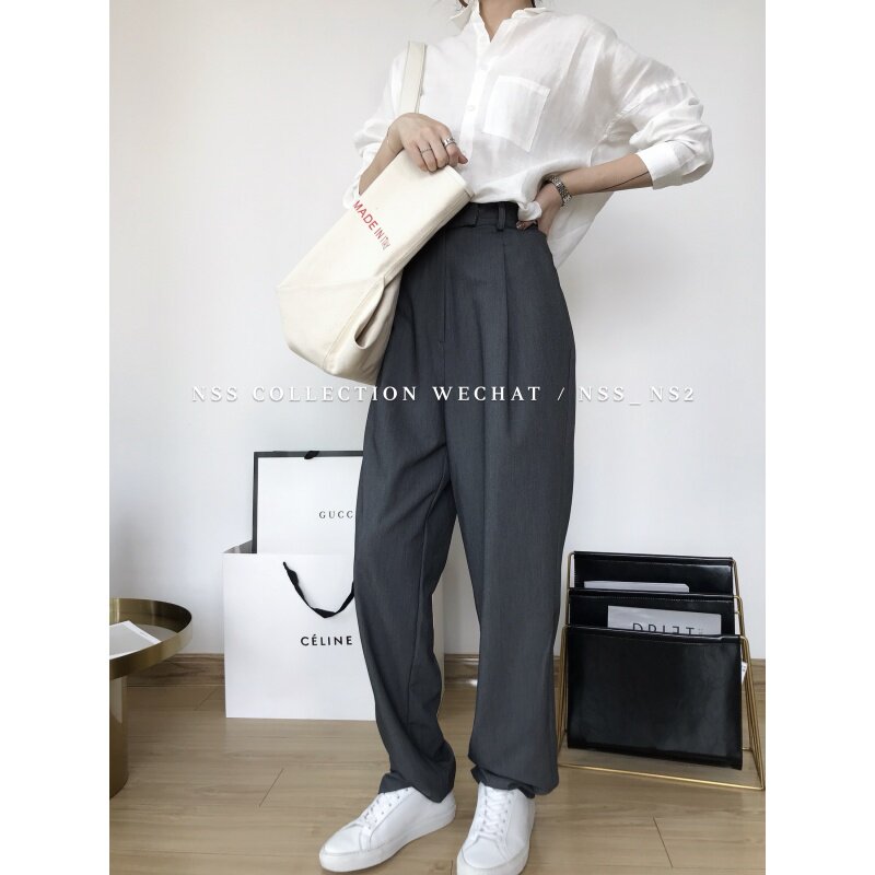 NSS COLLECTION CLASSIC TRENDY ULTRA HIGH WAIST DISPLAY SLIM SUPERIOR ASH HEAPS PILE PANTS DOWN WEST DRESS PANTS