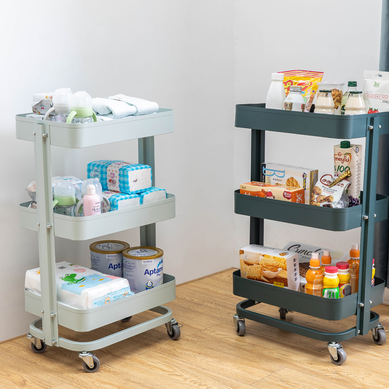 Carbon steel bedside storage Mobile stroller Baby storage rack storage Wheeled snack cart Bookshelf storage rack Small