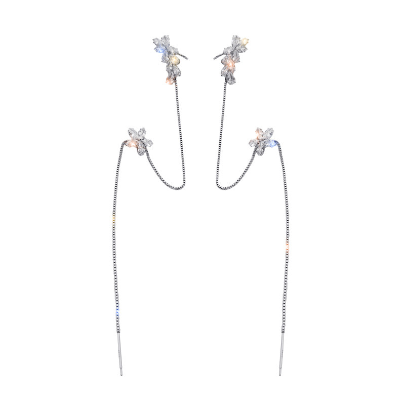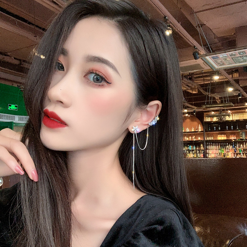 LACELIPS zircon flower tassel ear bone clip ear bone clip ear needle 2020 new trend long edition earrings women
