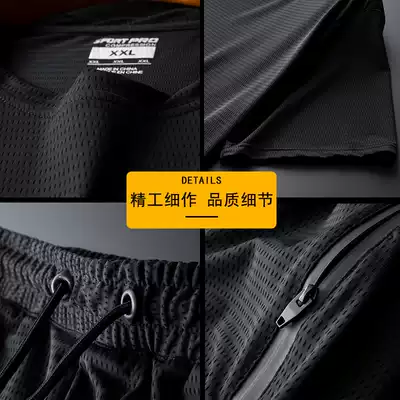 Summer T-shirt men's large size fat loose thin fat plus Ice Silk hollow sportswear two pieces one set 6XL