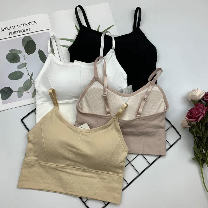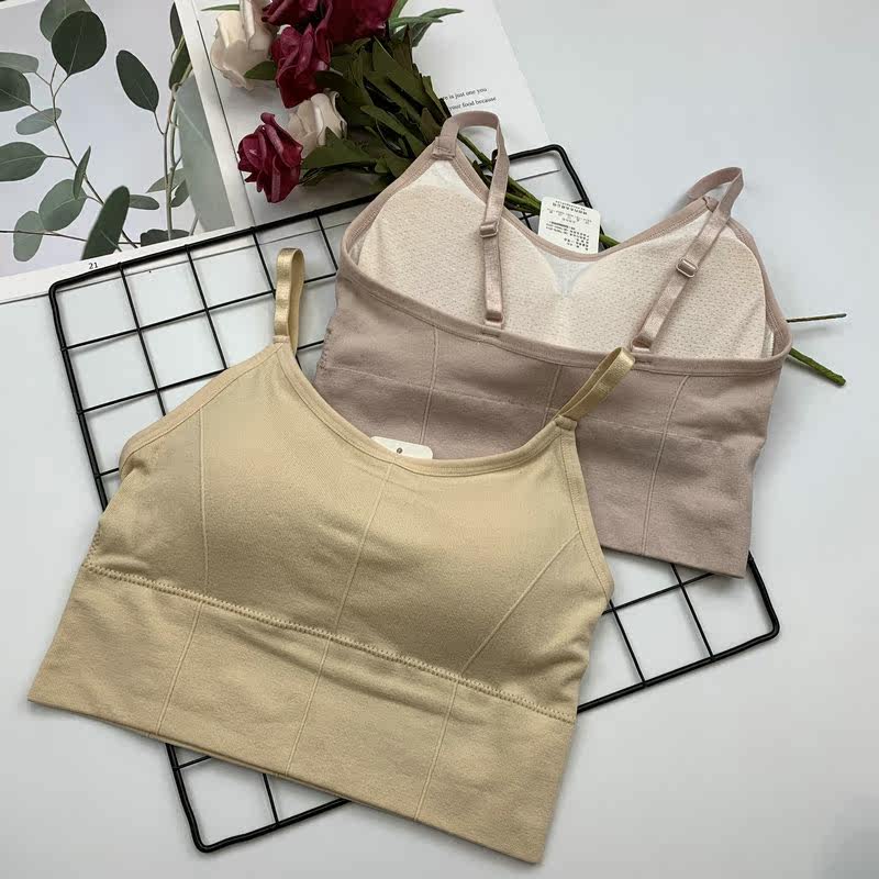 Thin shoulder straps beautiful back tube top female 2022 new spring and summer sports no steel ring gathering bra college students thin wrap chest