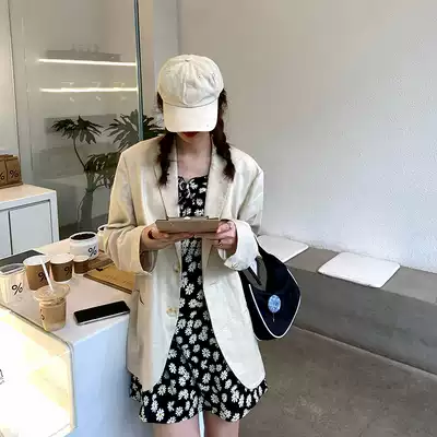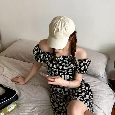 Anjiuyue one-word collar and two-wear 2021 summer new temperament waist thin daisy floral lazy style dress