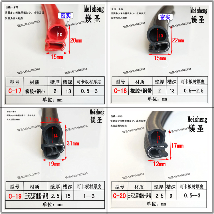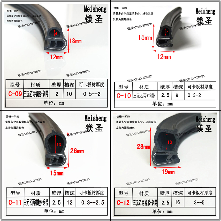 Side bubble seal rubber strip Car door anti-collision sound insulation waterproof electric box cabinet U-shaped steel strip glass card seal strip