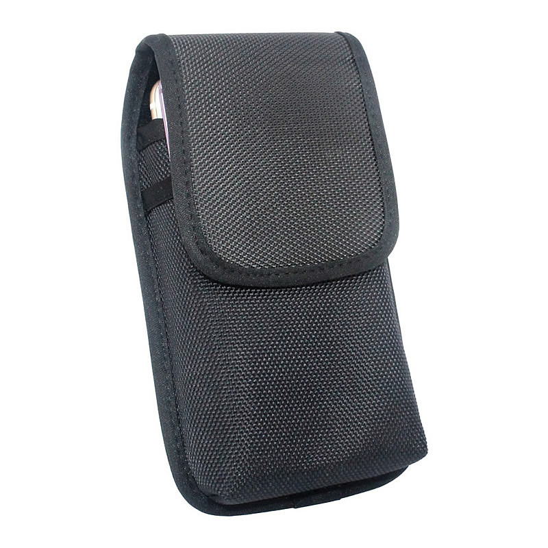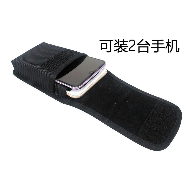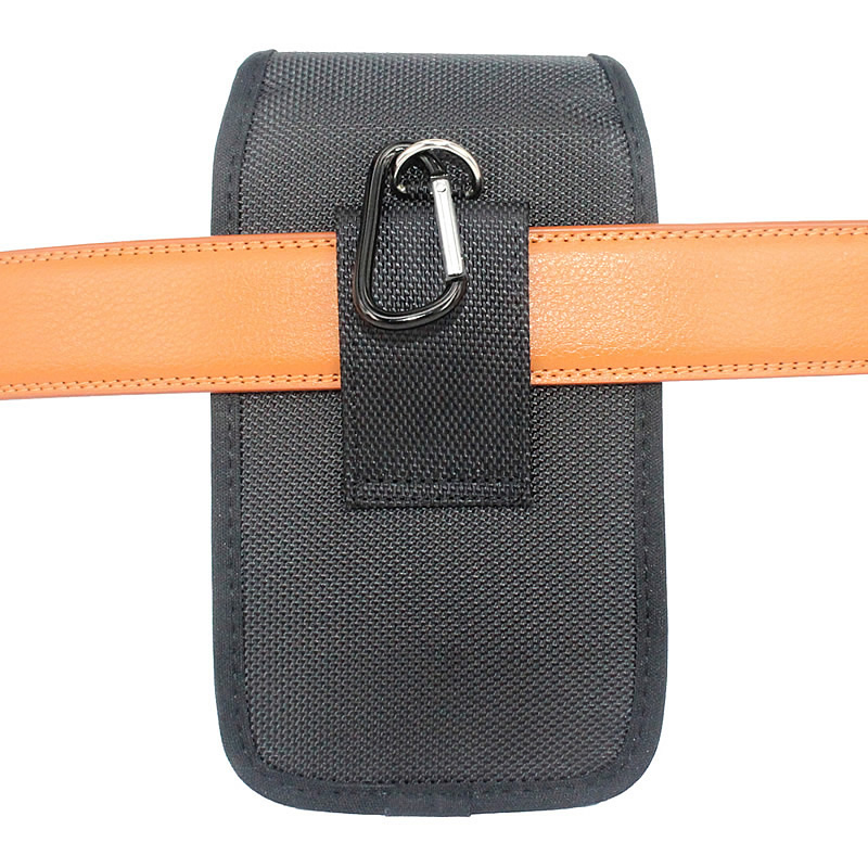 Put 2 mobile phones hanging out of pocket wearing leather belts Vertical style male elderly Oxford cloth bag for delivery and running business renovation site