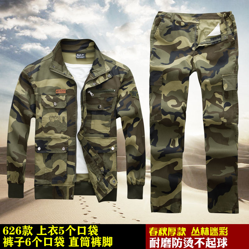 Camouflage overalls men's cotton elastic spring and autumn summer electric welding tooling suit wear-resistant anti-scalding thin labor insurance clothing