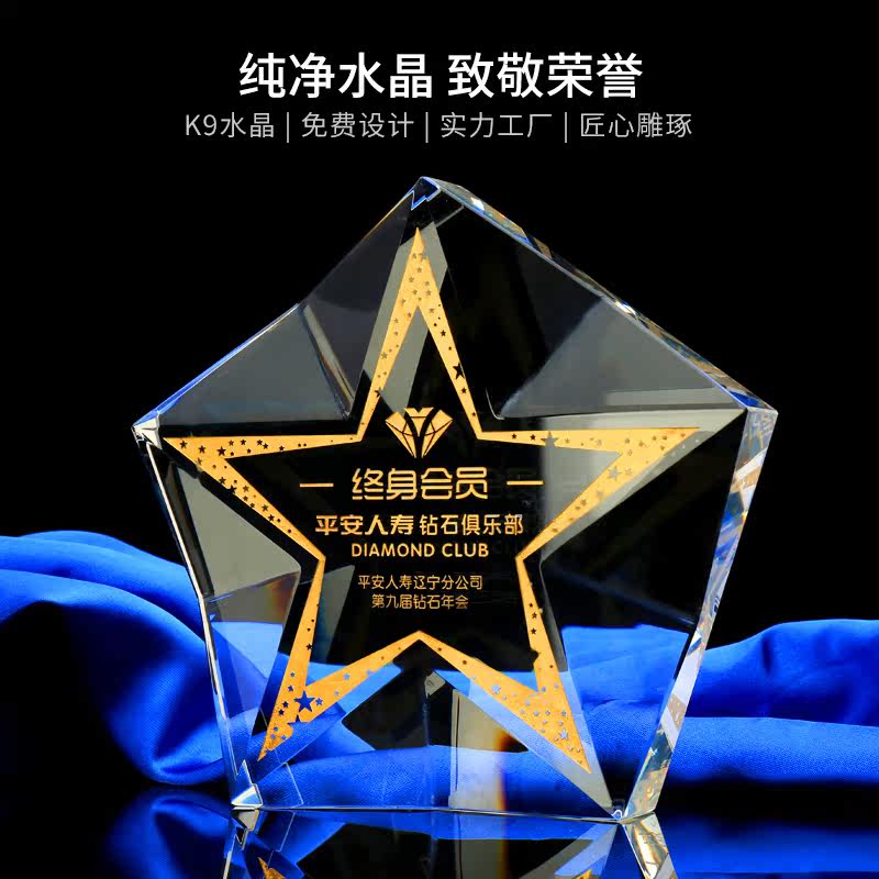 Crystal trophy custom medal custom thumb five-pointed star epidemic retrograde volunteer souvenir award gift