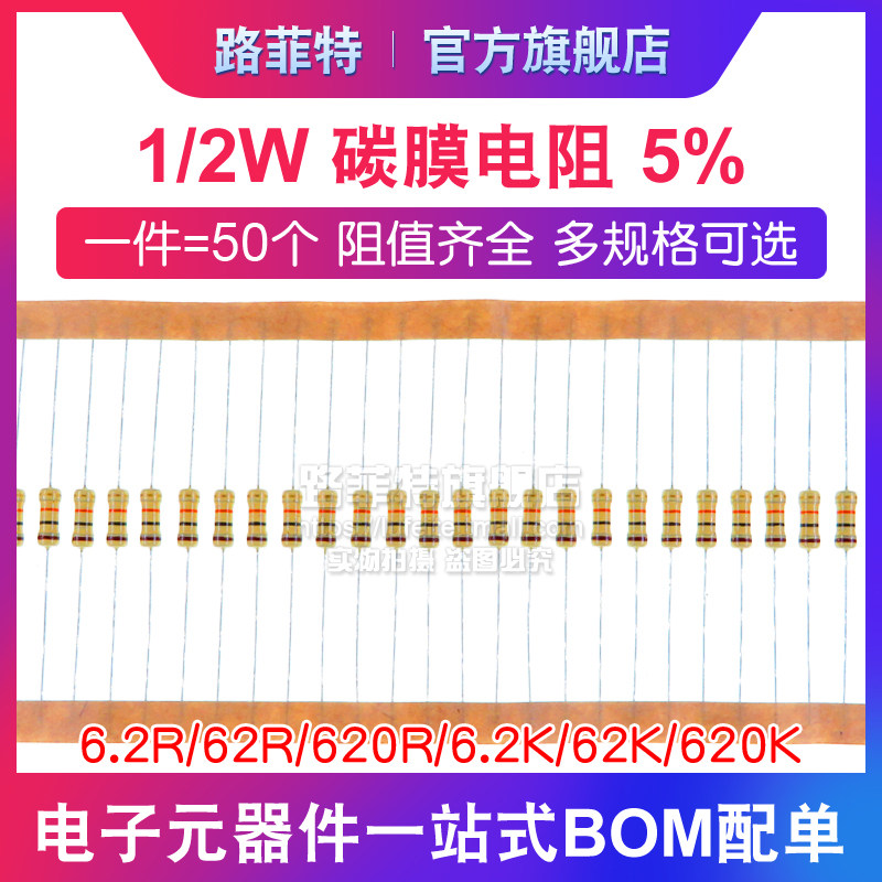 1 2W Carbon Membrane Resistance 5% Four Color Ring 6 2R 62R 620R 6 620R 2K 2K 62K 620K Ohm resistor-Taobao