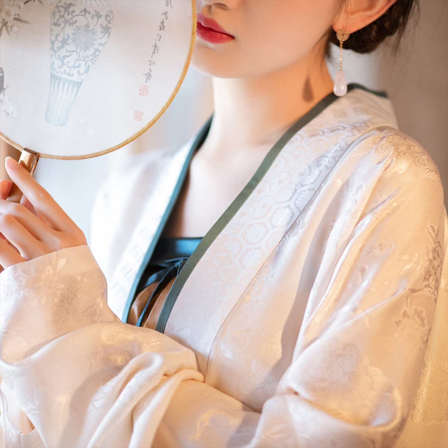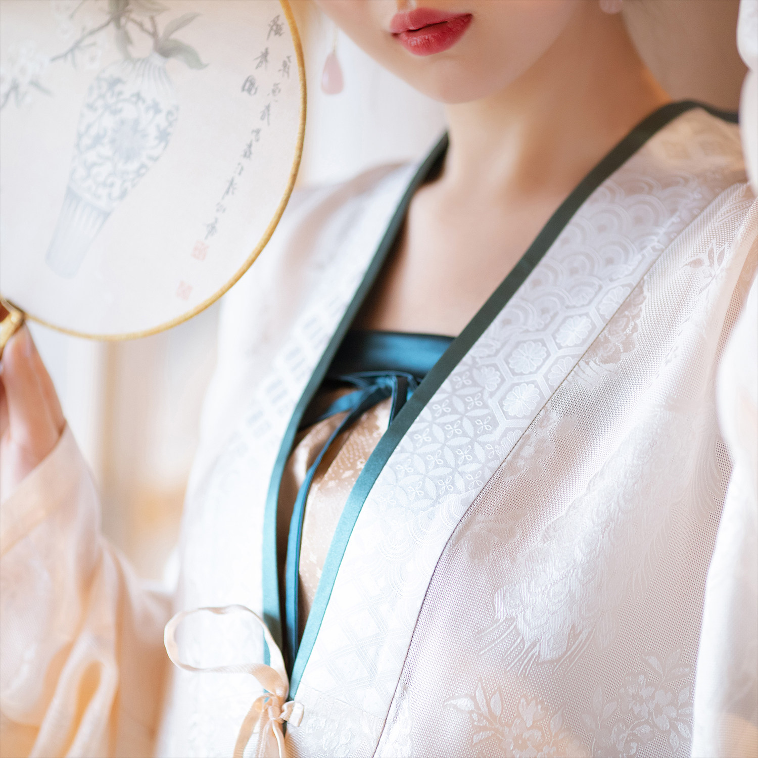 Cloud Shadow -- Spring Summer and Autumn Song Dynasty Handmaid's Handmaid's Female Pair of Straight Collar Plane Sleeves Narrow Sleeve Short Jersey Girl's Genuine Silk Veal Blouse