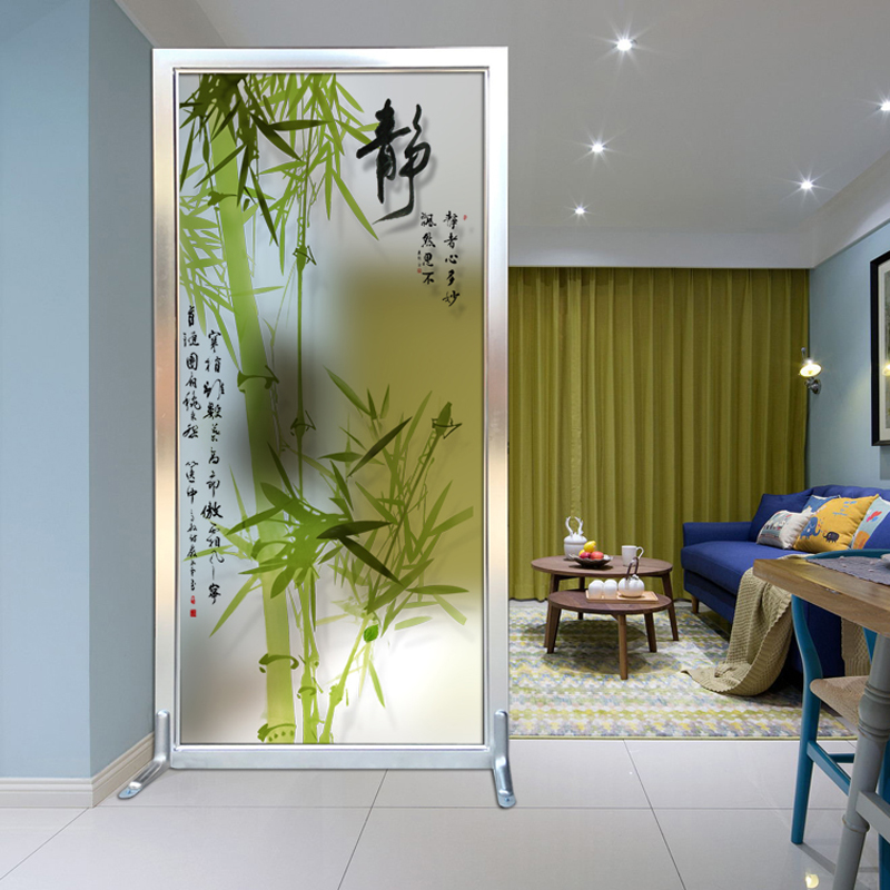 Decorative Art Glass Xuanguan Custom Partition Screen Chinese Style Brief Modern Living Room Frosted Light Transmission Process Steel