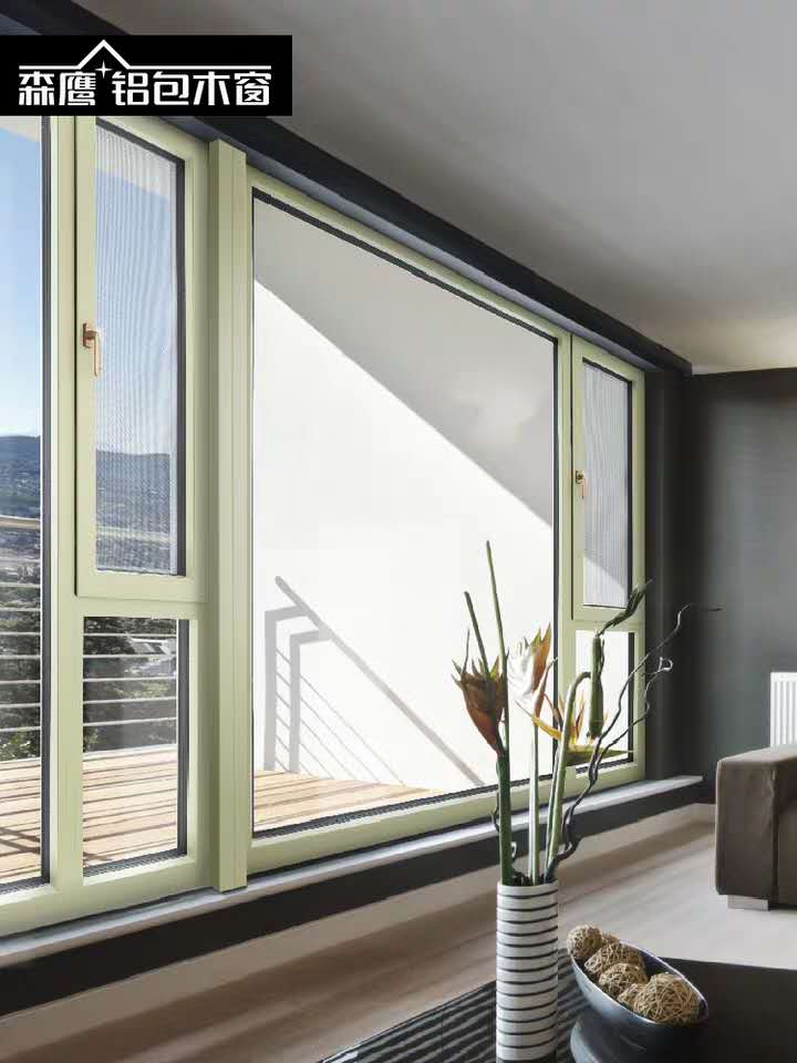 Senhawk Aluminum Clad Wood Window Villa Windows High-end Doors And Windows F110 Inner Open Window Soundproof Noise Reduction Custom Gold