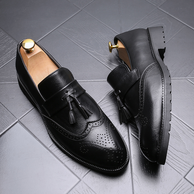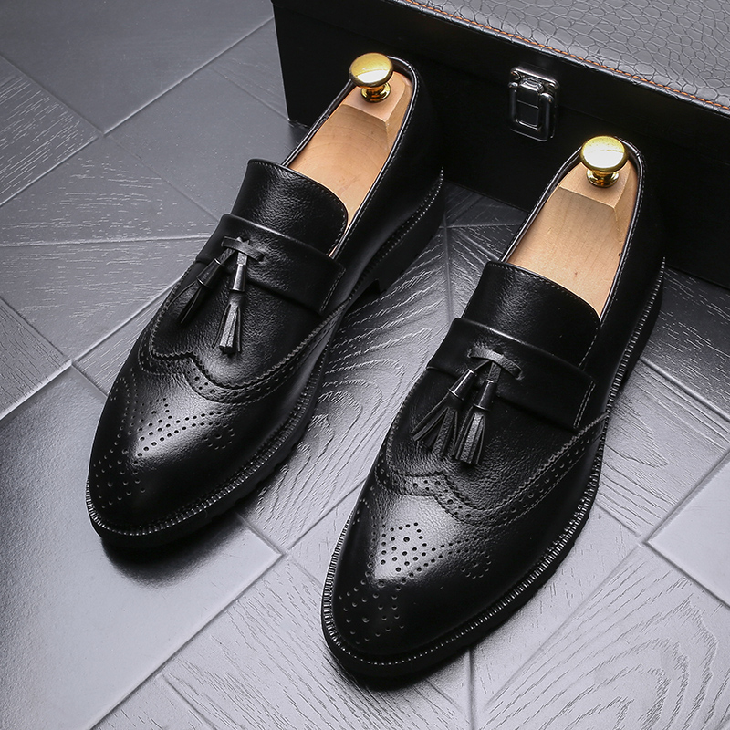Leather shoes men's Korean version all-match trend British style leather slip-on slip-on shoes breathable casual men's beanie shoes trend
