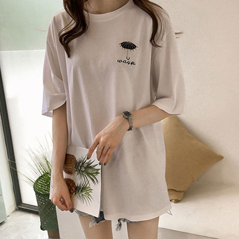 European goods embroidered short-sleeved t-shirt women's ins super hot T-shirt summer new Korean version loose and lazy wind top