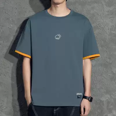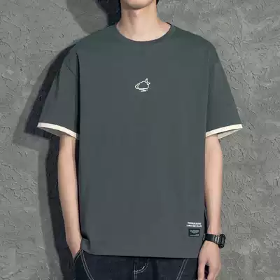 Japanese fake two men's short sleeve T-shirt Tide brand summer cotton loose boy white trend clothes T-shirt