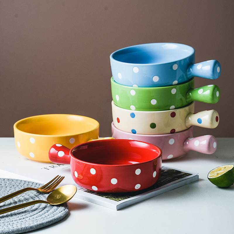 Wave-point ceramic handle bowl handlebar Baking Rice Bowl breakfast bowls Blister Noodles Bowl Fruit Salad Bowl Oven Microwave Home