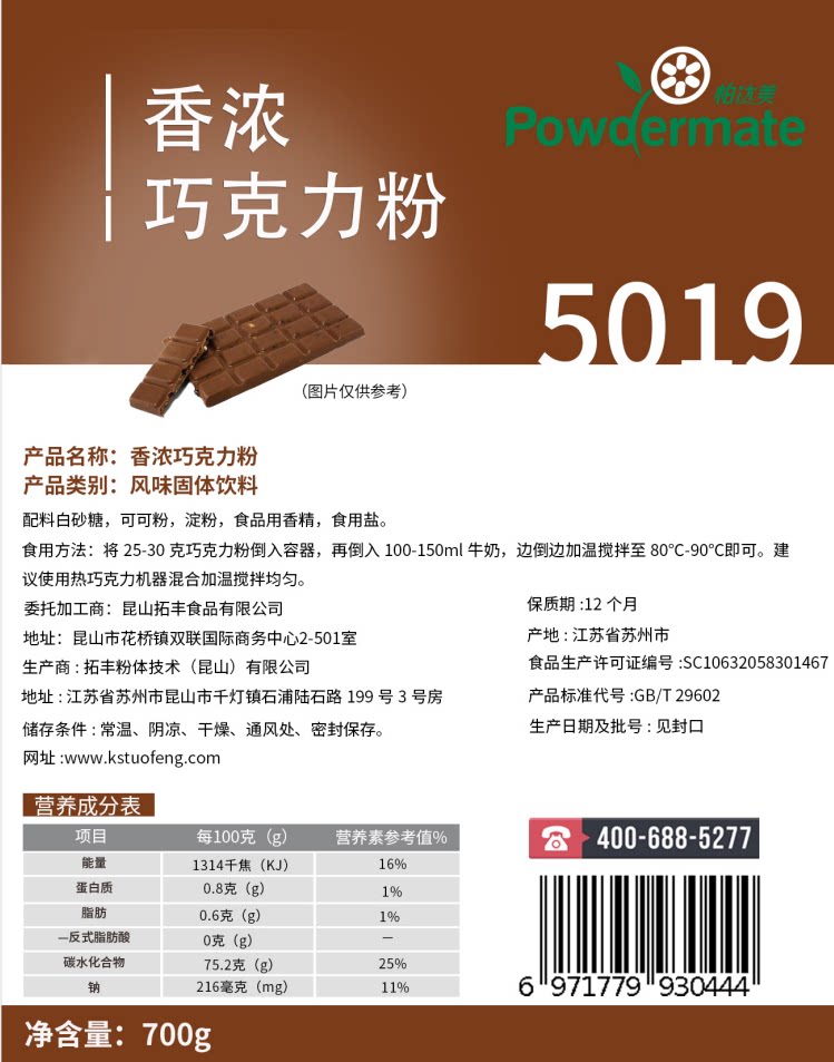 Tuofeng chocolate powder brewing drink hot drink sprinkled on baked cake sweet 700g * 2