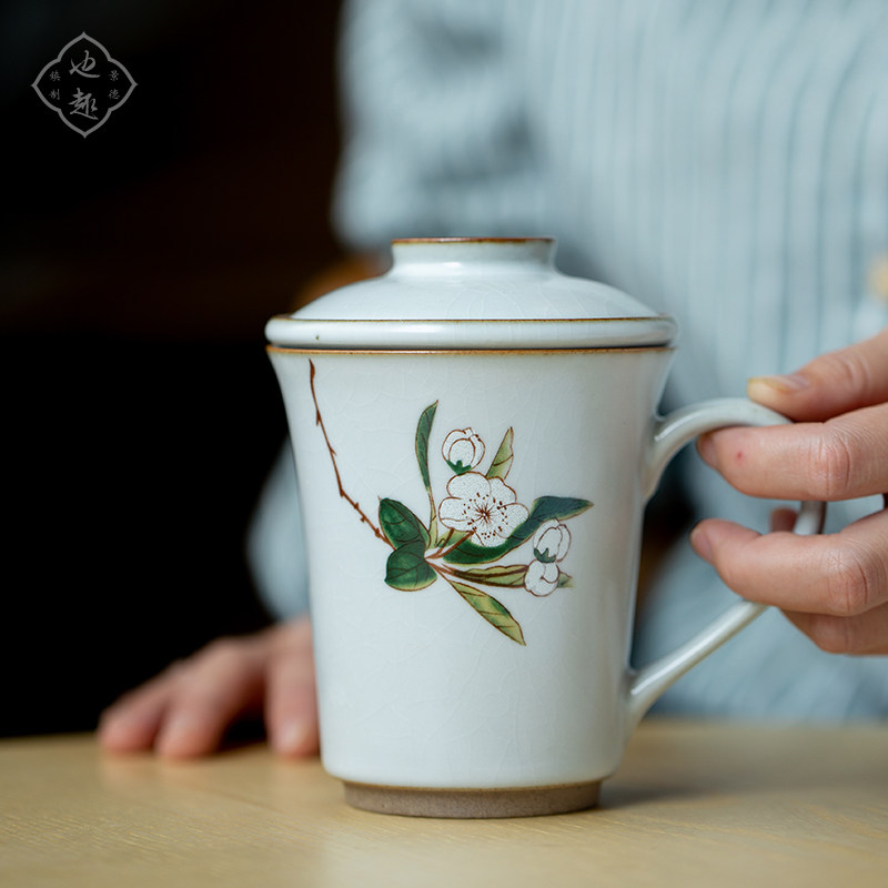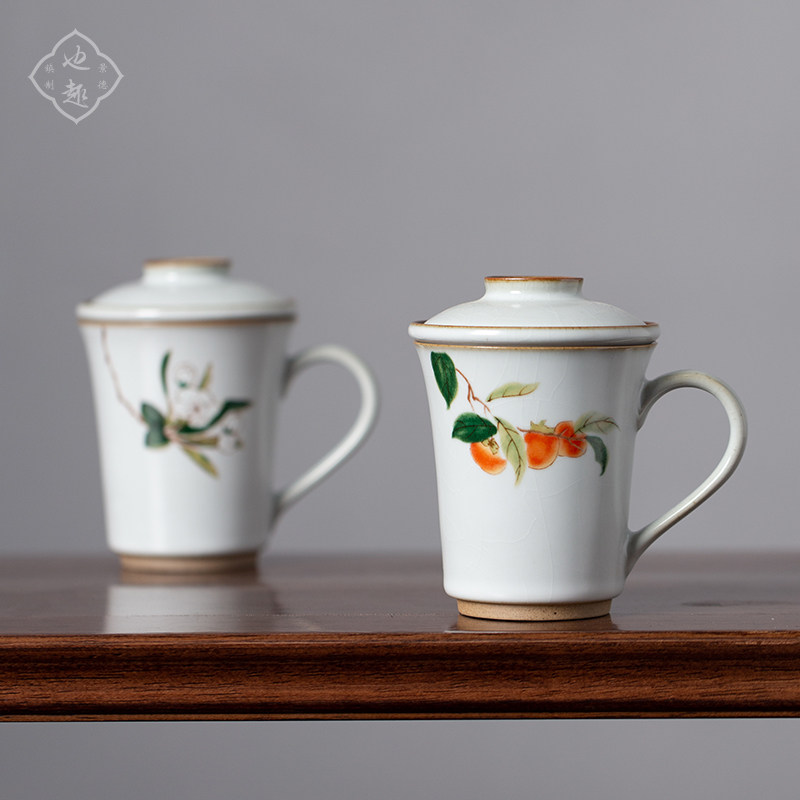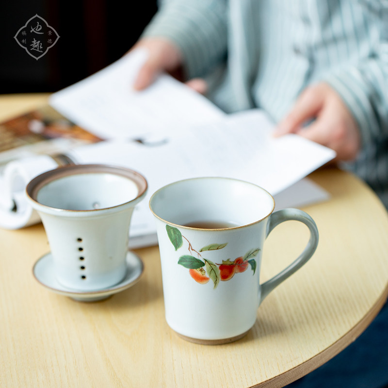 Also fun large capacity ceramic teacup with lid with filtered tea separated household Ru kiln water cup persimmon mug