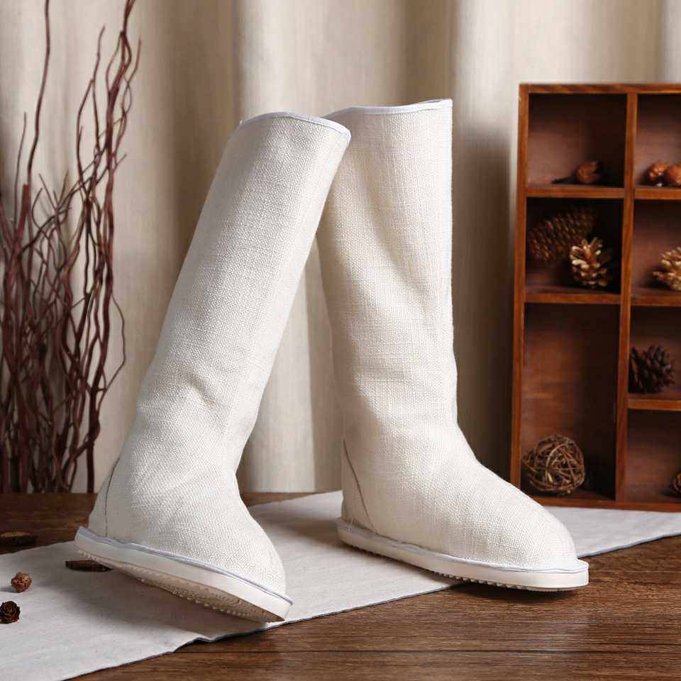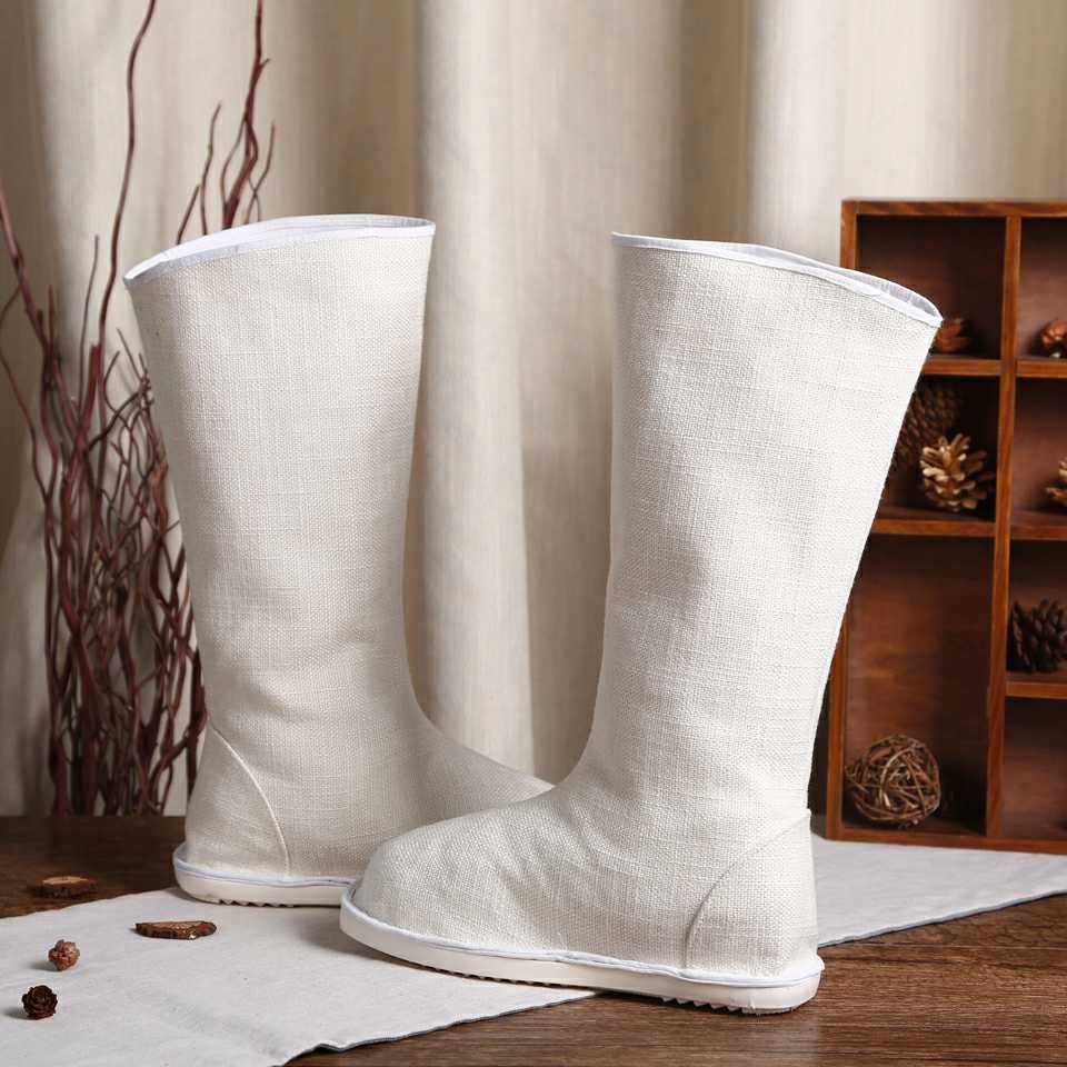 Spot Sale No Supplements Cotton Linen Breathable Waterproof Bottom Hanfu Shoes Cos Long Cylinder Boots Black White 100 Hitch Base-Taobao