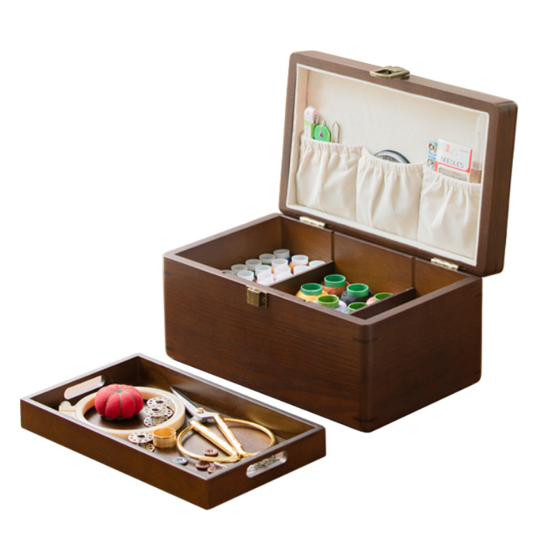 Home sewing box embroidery handmade diy sewing tool set sewing storage box solid wood dowry wedding gift