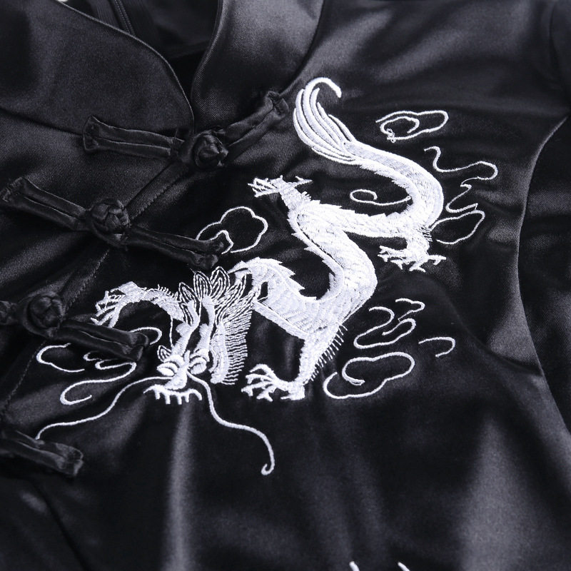 New Dark Black China Wind Qipao High Open Fork Long Version Disc Buckle Black Sexy Jk Improved Version Dragon Tattooed Body Dress