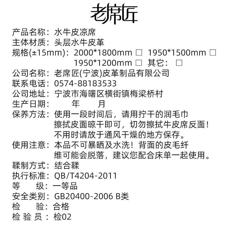 Old mat maker painted cowhide mat with thick first layer buffalo leather cool mat 1.8m three-piece set of 1.5 meters leather soft mat