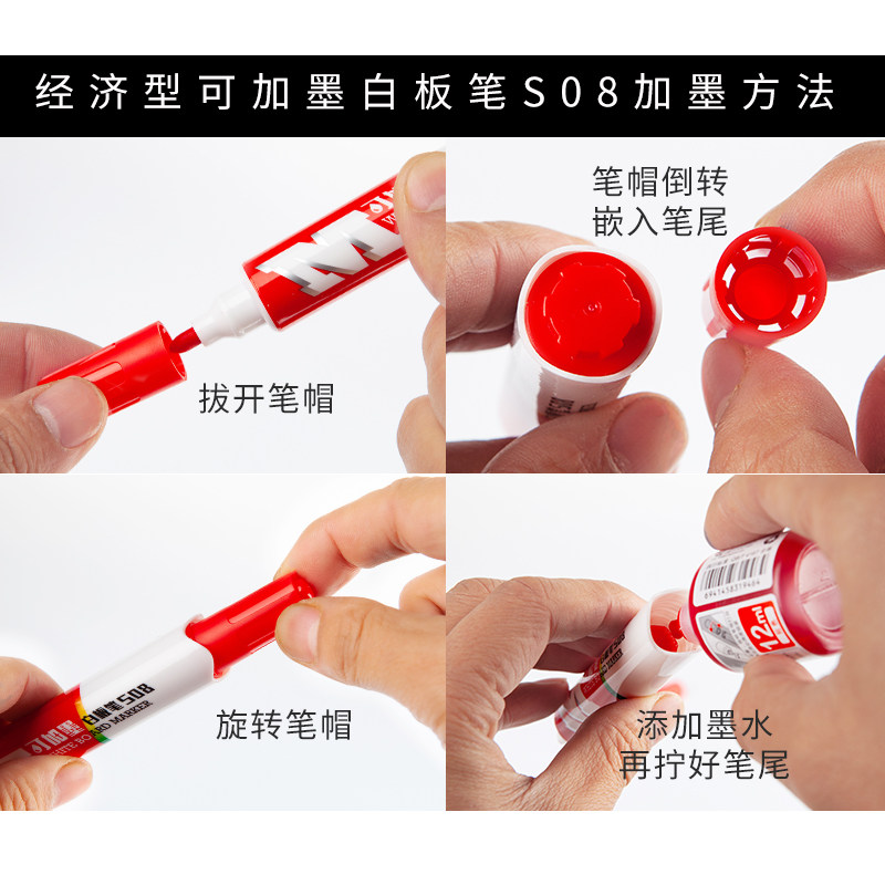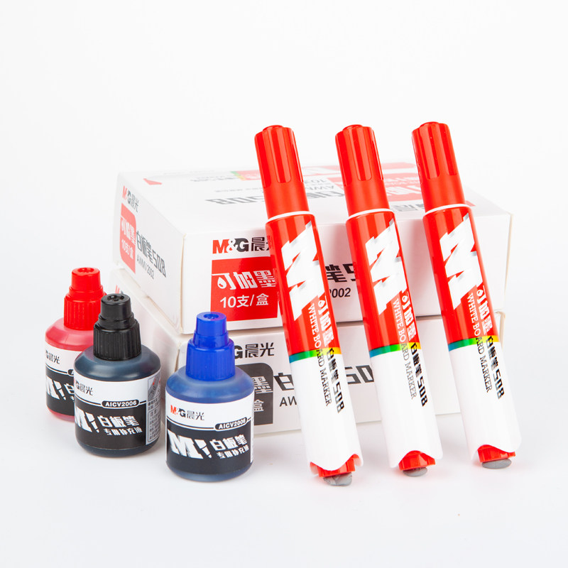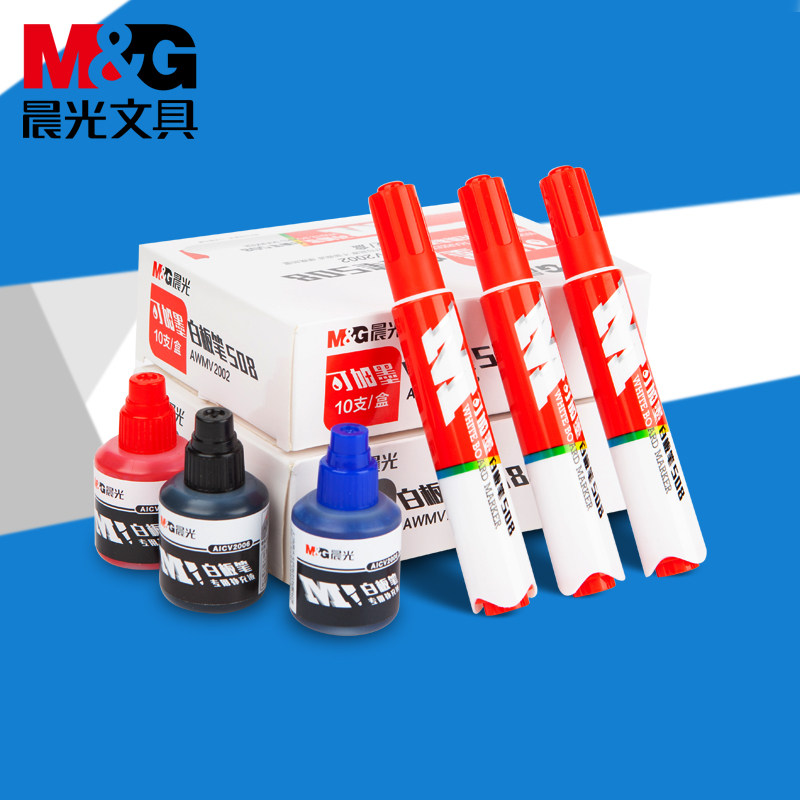 Morning light stationery whiteboard pen Red blue black water-based pen Easy to wipe large capacity can add ink Mark Kiwifen ink refill liquid Office business special notes Meeting teacher lectures affordable outfit