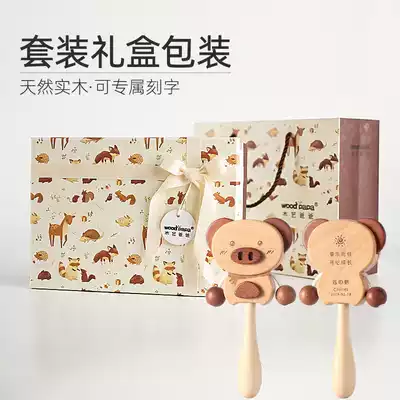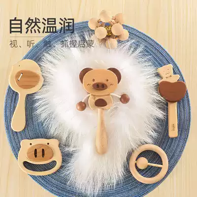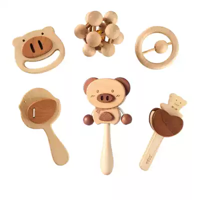 woodpapa pig rattle set one-year-old baby gift high-end creative children's toys can be chewed
