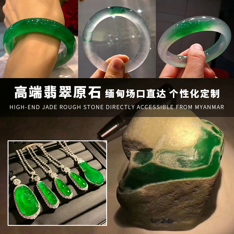 Jade bracelet Ice species floating flower Glass species Jade pendant leaves Jade Buddha fair buckle female round bar jade bracelet