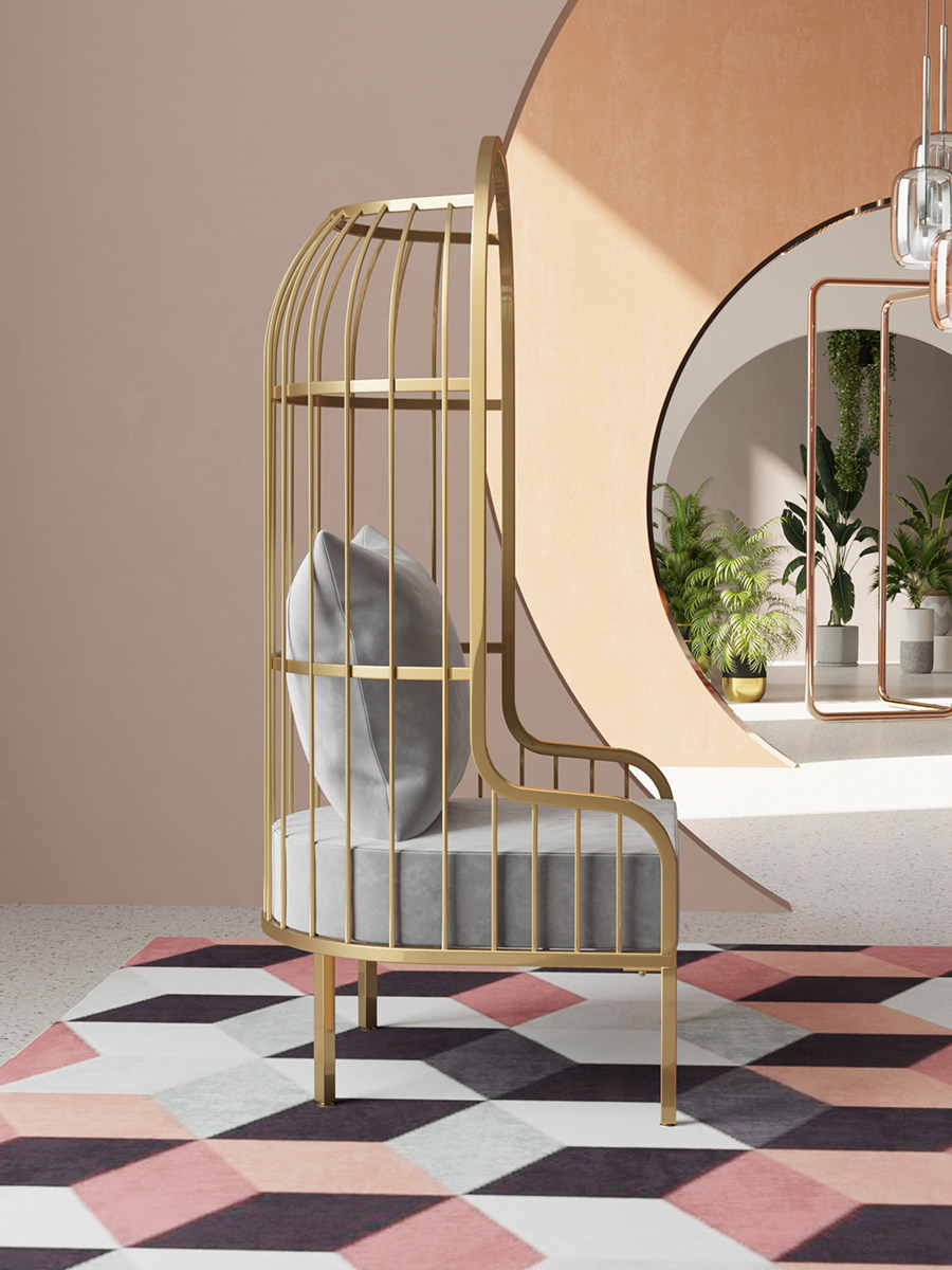 Nordic Designer High Back Sofa Chair Ins Nets Red Single Iron Art Bird Cage Sofa Chair Light Lavish Living Room Bedroom-Taobao