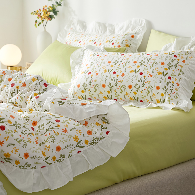 Korean-style cotton four-piece set small floral princess wind lotus leaf bedding cotton single bed dormitory three-piece set
