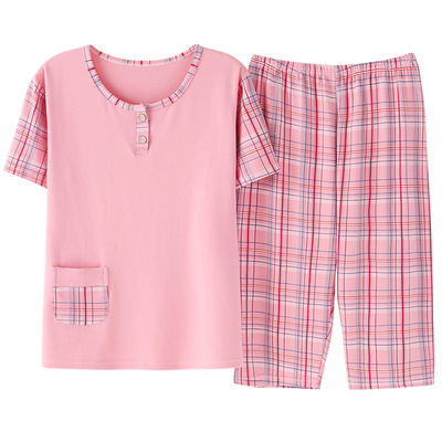 Summer Moms Short Sleeves Pure Cotton Pyjamas Middle-aged Lady Fat MM Casual Round Collar Loose Summer Home Suit Thin