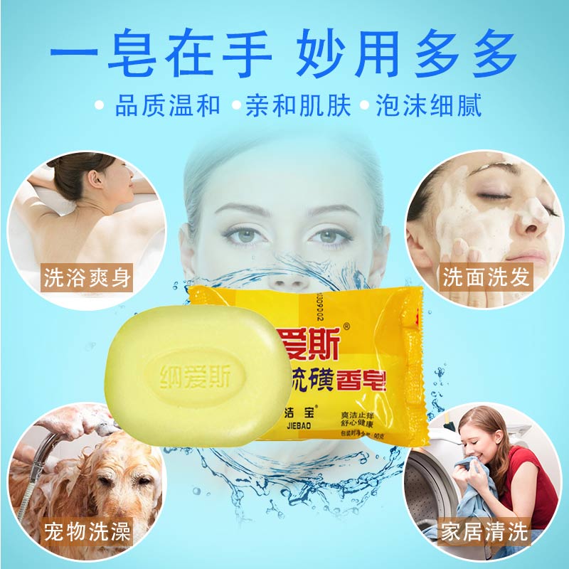 CNICE Naas Sulfur Soap 90g Sulfur Soap Hand Washing Bath Cleansing Soap to Bath Ball Soap Box