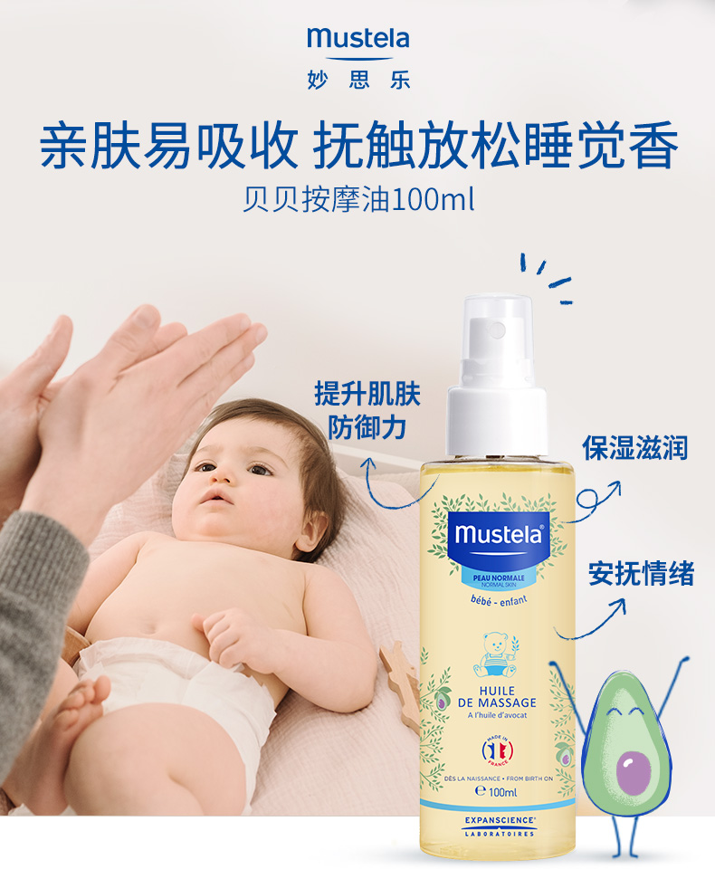 France Mustela Muzhitian Gallery newborn baby massage oil baby bb oil dandruff SPA touch oil 100ml