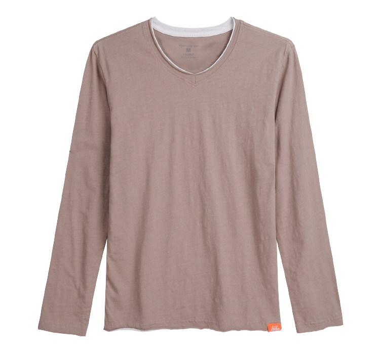 V - Color T - shirt - tattoo cotton pure cotton simple splicing long - sleeved coat