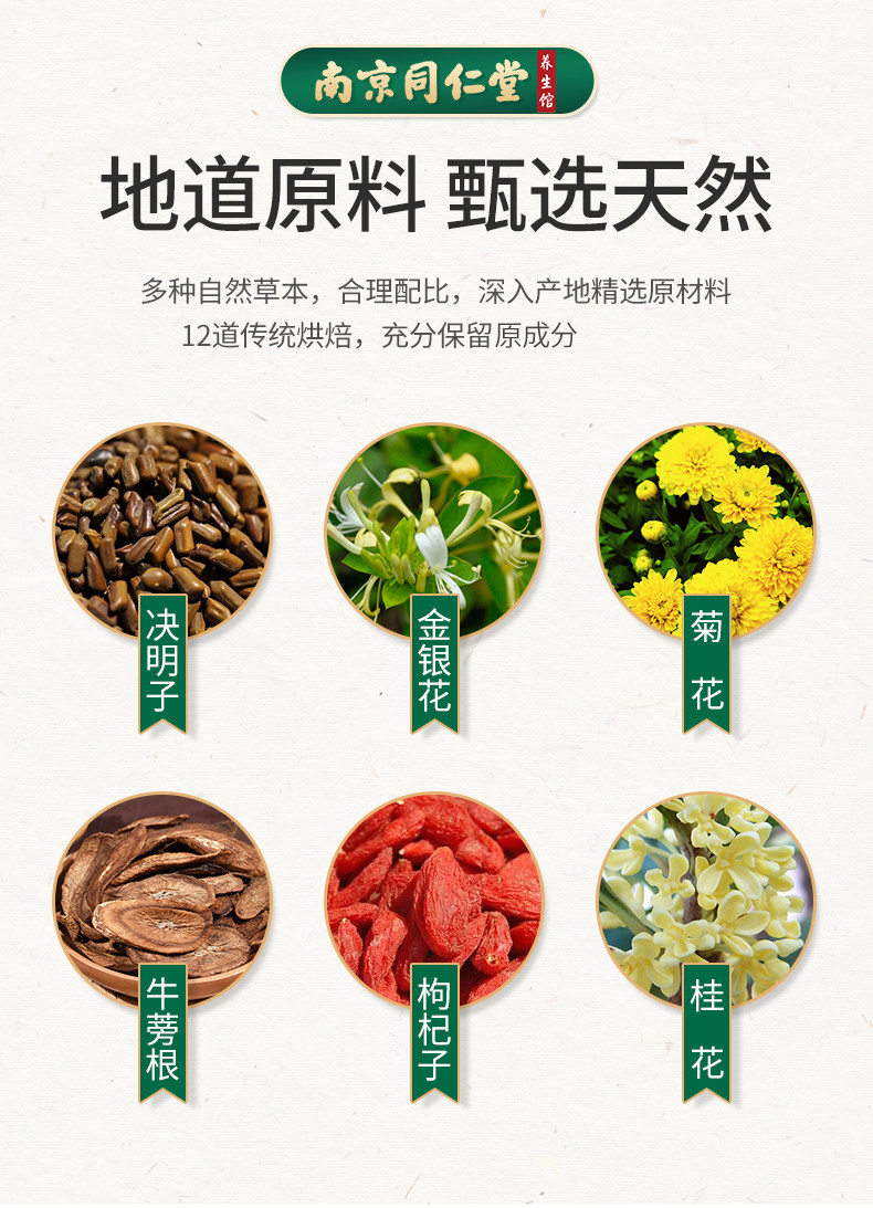 Nanjing Tongren Hall Chrysanthemum Medlar Semen Cassiae Tea Liver Fire Tea honeysuckle Burdock Root Liver Care Staying up Night Nourishing Tea