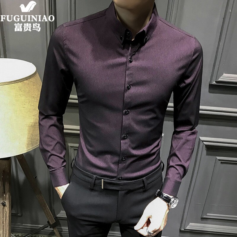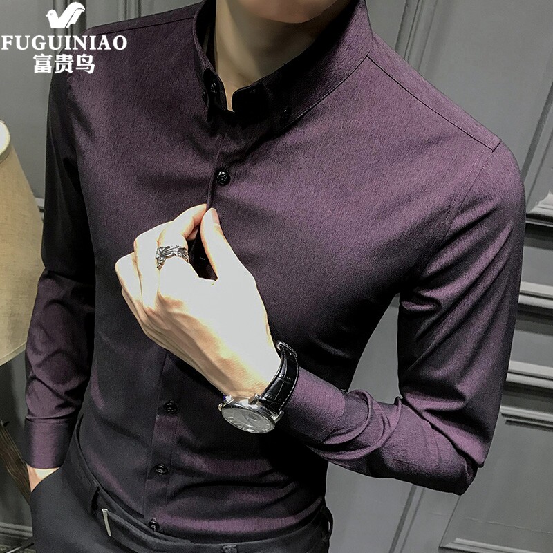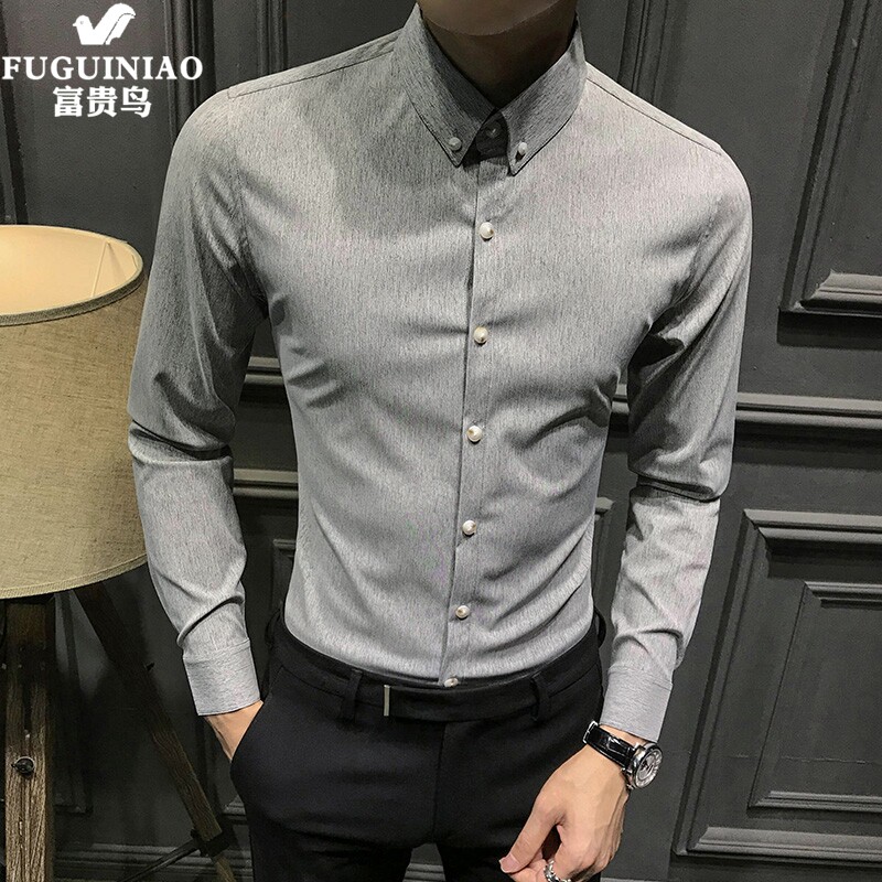 Fugui Bird Shirt Men's Summer New Korean Slim Casual Long Sleeve Shirt Men's Trend Handsome Business Joker
