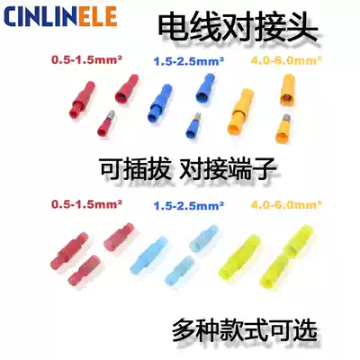Bullet head male and female wire to connector plug spring terminal flag type terminal plug connector quick connector 50 sets
