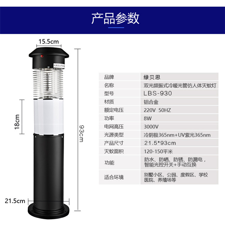 Green Beth brand community real estate outdoor mosquito killer lamp plus lighting street lamp dual-use mosquito trap lamp high-voltage power grid to kill mosquitoes