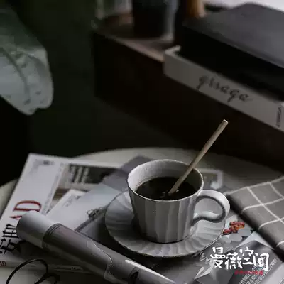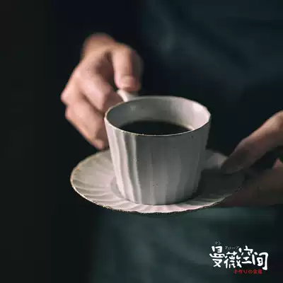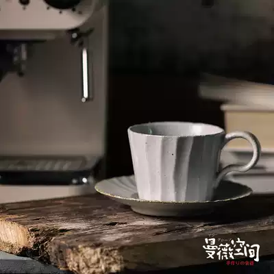 Pottery Cup retro style hand-made hand-grated coffee cup mocha Japanese wood-fired plate bottom tray ins ceramic coarse