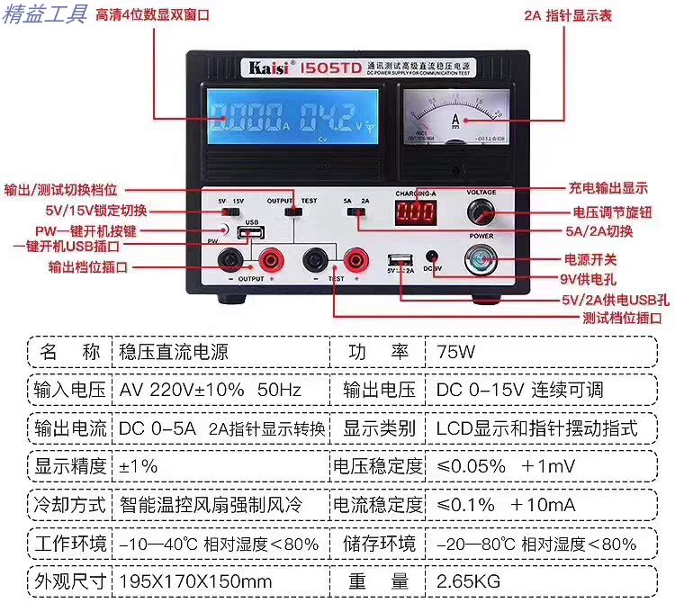 Advanced cell phone repair voltage stabilized DC measurement power 15V2A5A Current meter pointer number of USB mobile phone charge