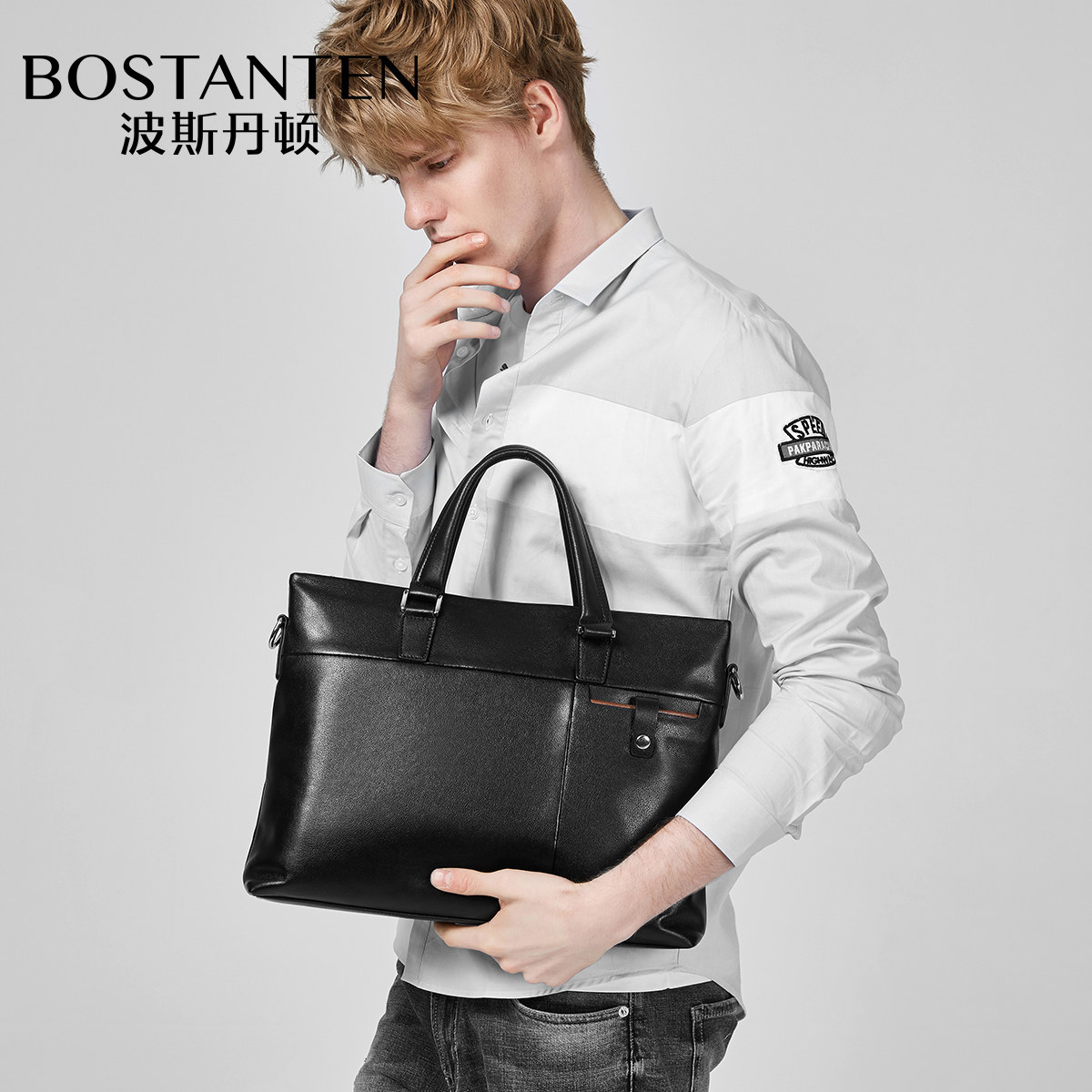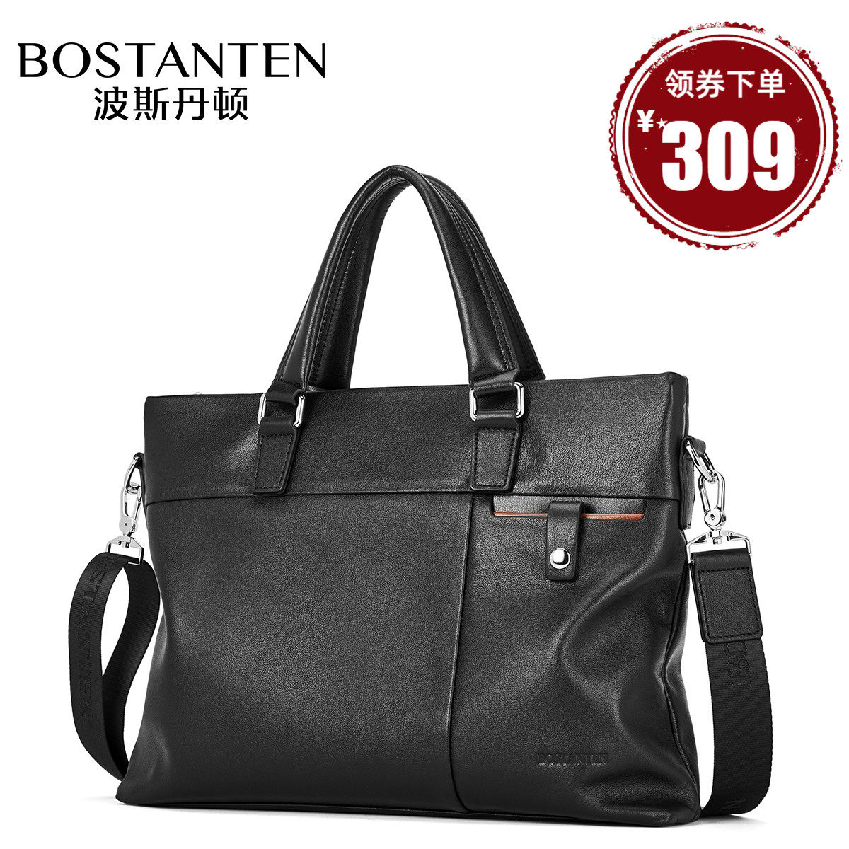 Posdington men's handbag handbag handbag handmade briefcase male business genuine leather single shoulder inclined shoulder bag file leather bag