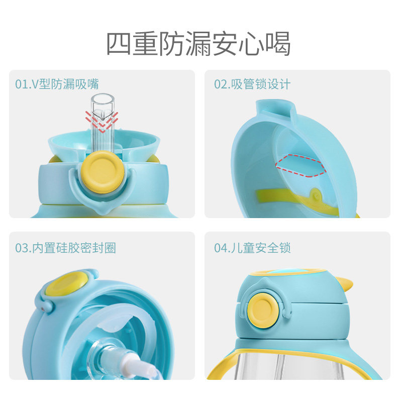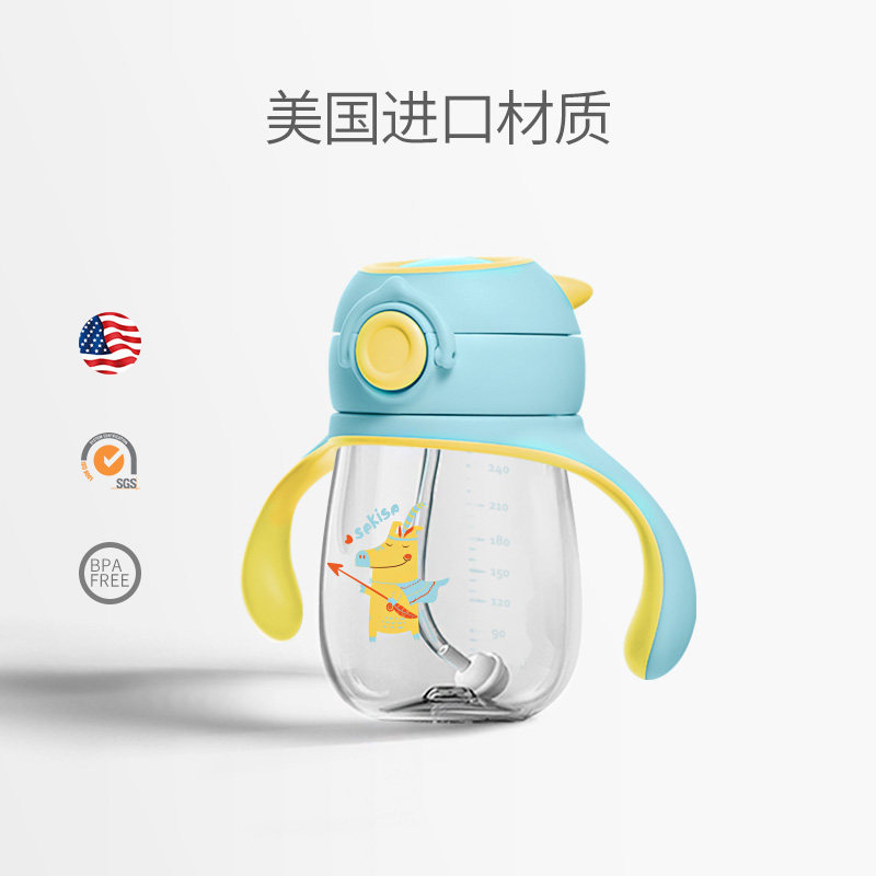 Hekai Children's school Drink cup baby anti-choking anti-fall handle anti-fall with straw bottle Big baby drink water glass student